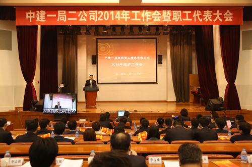 高建军做了题为《以工期管控为主线 以标准化建设为抓手 推动三大建设有效落地 确保履约能力全面提升》的工作汇报。2013年,二公司生产履约系统认真贯彻落实“集团管公司、公司管项目”的组织原则,通过切实有效的落实计划管理、工期预警纠偏、项目风险抵押金缴纳等多项措施,推进大项目部建设工作落地;安全、质量高标准创建了多项优质工程,公司主承建的协和医院工程荣获鲁班奖,是公司大品牌建设的一个里程碑;劳务队伍的准入、清出以及分类分级管理等机制不断完善,在为公司生产履约提供坚实保障的同时,有利推动了企业大平台建设。